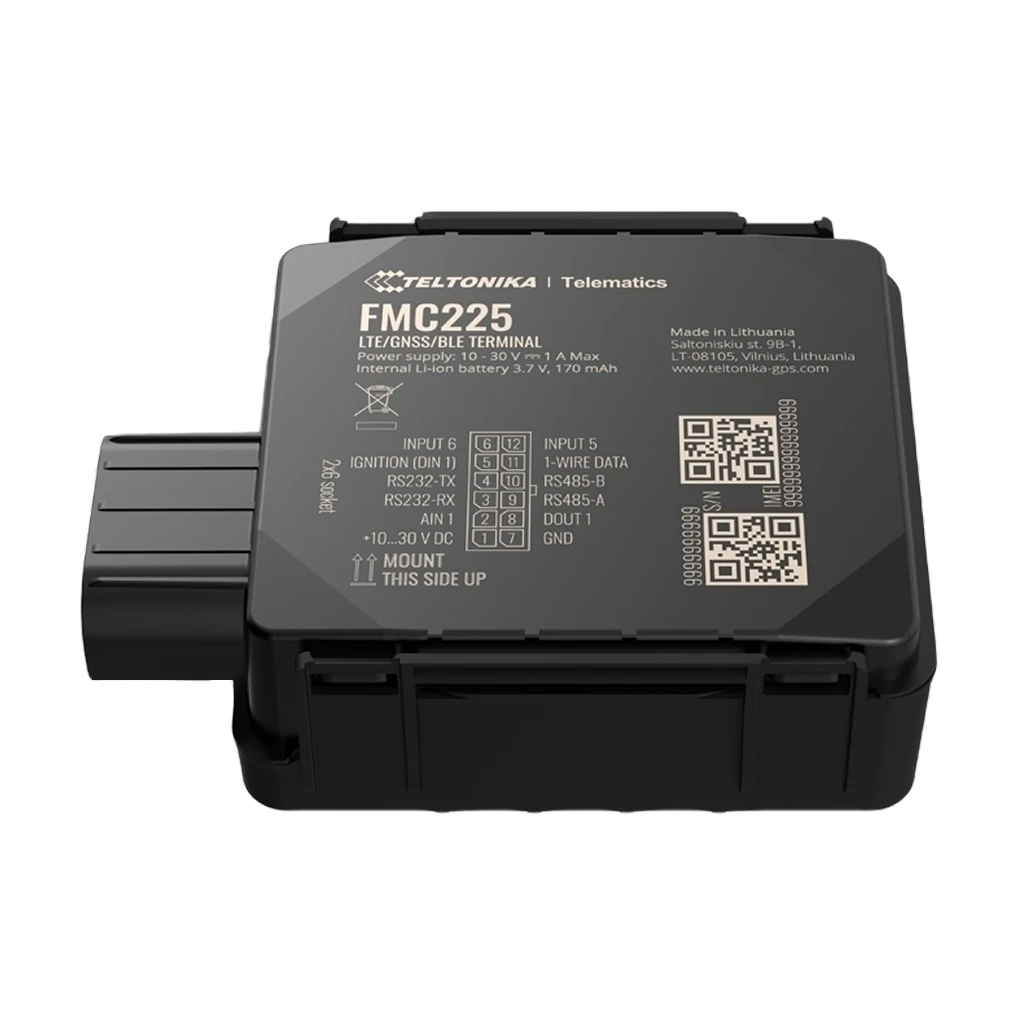 Teltonika FMC225 — это влагостойкий трекер с поддержкой 4G LTE Cat 1 и интерфейсами RS485 и RS232. Устройство поддерживает две SIM-карты, что позволяет снизить расходы на роуминг.